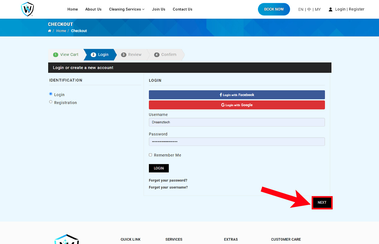 If you're a returning customer, please login using your email and password. Otherwise, please register by completing the registration form. Then click the "Next" button to continue.