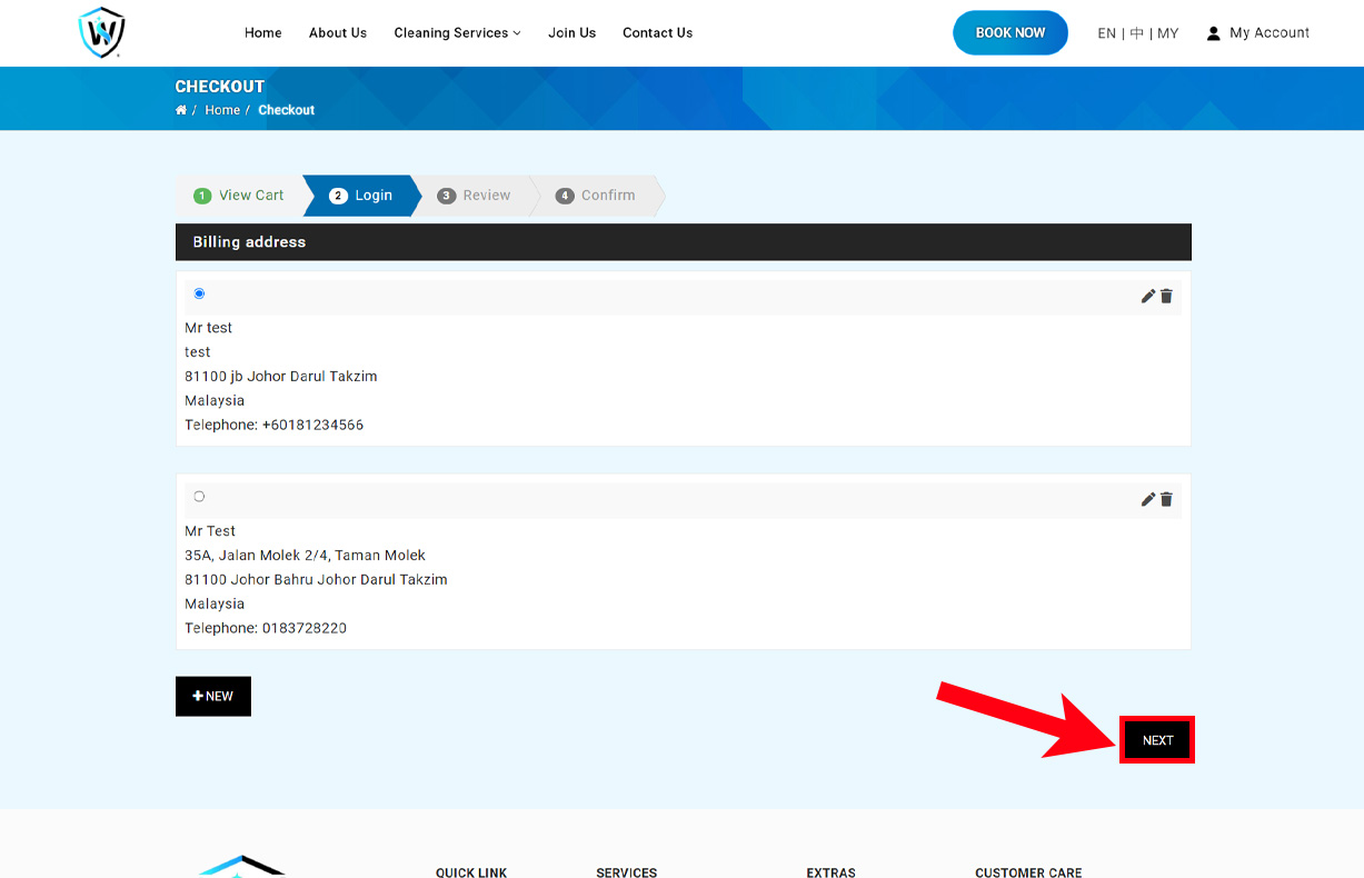 Choose your billing/shipping address. You can also edit them with the pen icon. Click "Next" button to proceed once you're done.